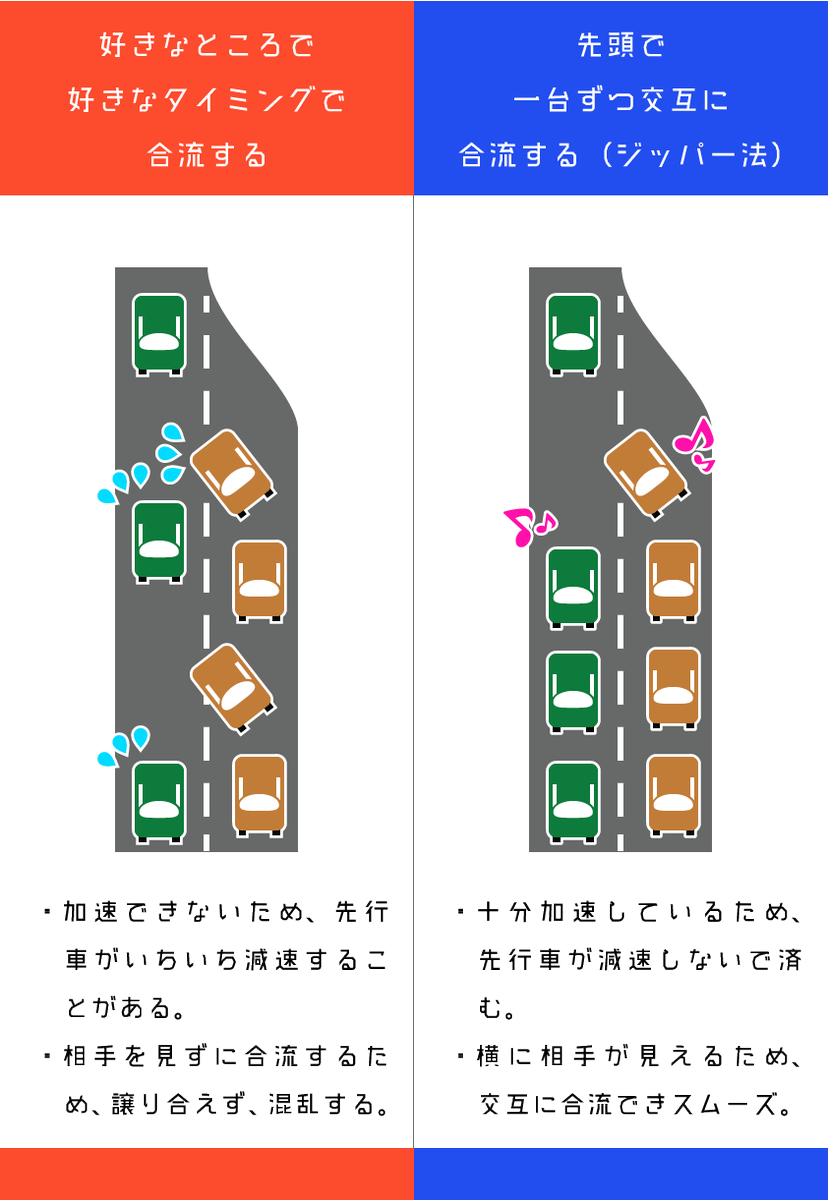 ジッパー法 高速道路の合流は加速車線の先頭で 合流する側もされる側も知っておきたい渋滞を減らす心がけ Togetter